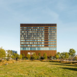 Dies gilt auch fĂŒr den neuen Standort der Fachhochschule Nordwestschweiz in Muttenz. Im Campus studieren, forschen und arbeiten rund 4500 Menschen. Auf zwölf Geschossen vereint der 2018 eröffnete Prestigebau fĂŒnf FakultĂ€ten. HerzstĂŒck des imposanten Kubus ist ein 1500 qm2 grosses, 30 Meter hohes Atrium, die Lichthöfe reichen gar 65 Meter hoch.