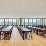 Darum herum gruppieren sich Aula, Mensa, HörsĂ€le und SeminarrĂ€ume. Auf den oberen Stockwerken sind Labore, GruppenrĂ€ume und BĂŒros eingerichtet; hinzu kommen eine Bibliothek und eine Lounge im Dachgeschoss. So unterschiedlich diese RĂ€ume sind, so verschieden sind die Anforderungen an die Akustik.